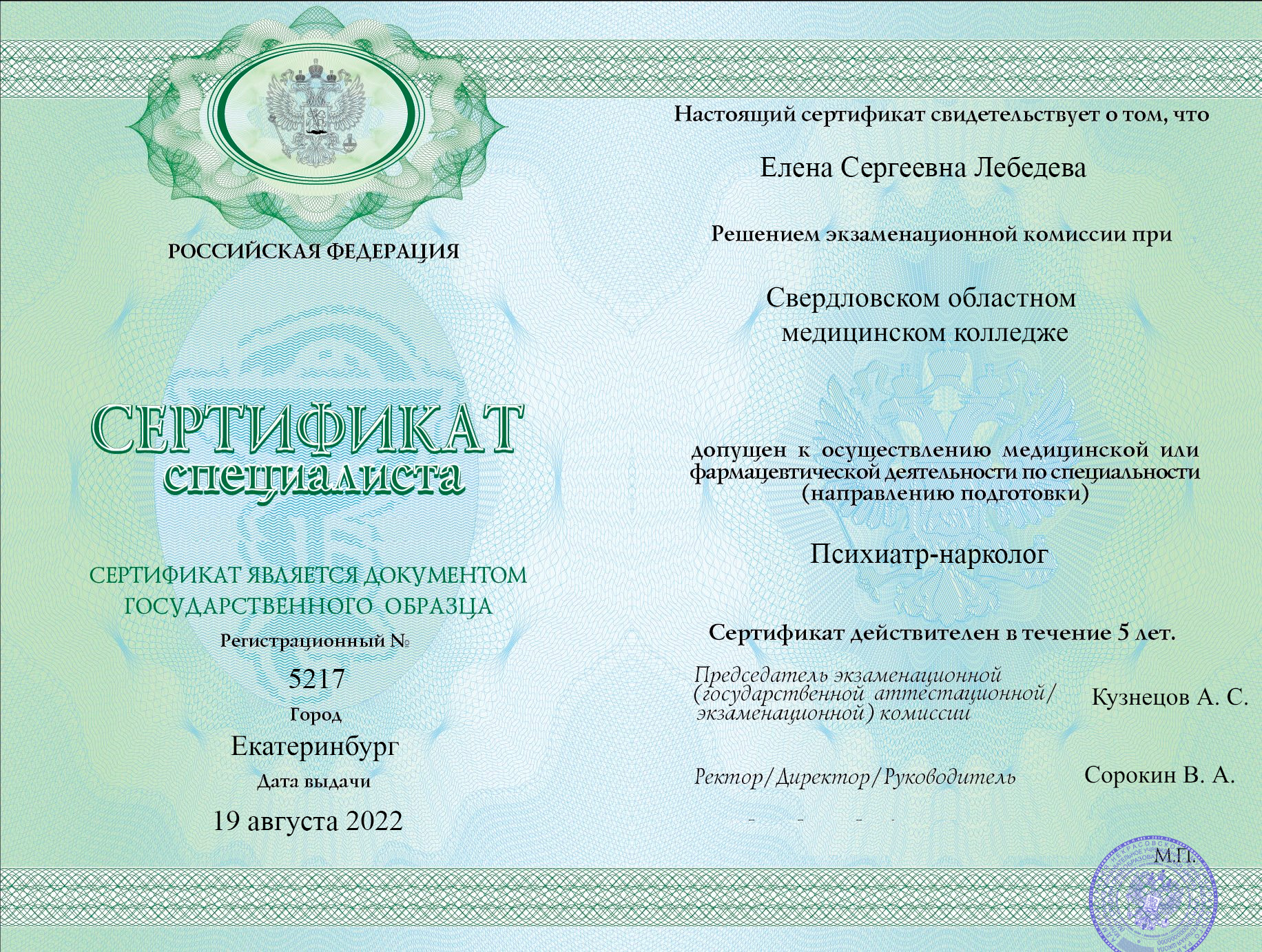Елена Сергеевна Лебедева врач нарколог клиники доктора Стукаловой в Дружковке